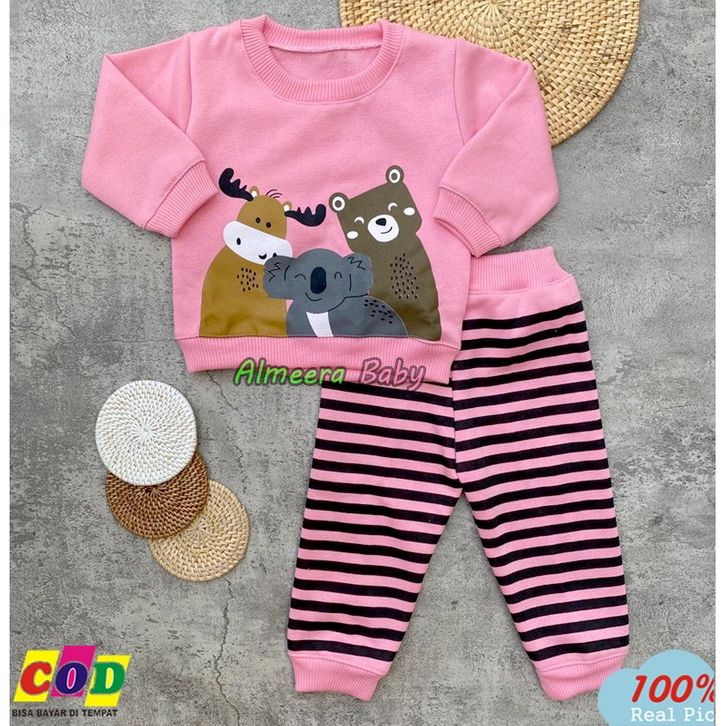 promo Setelan Baju Bayi Setelan Sweater Celana Joger Motif Animal Bahan Katun Fleece Usia 3-12 Bulan Almeera Baby and Ki