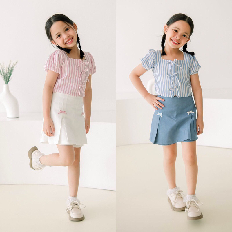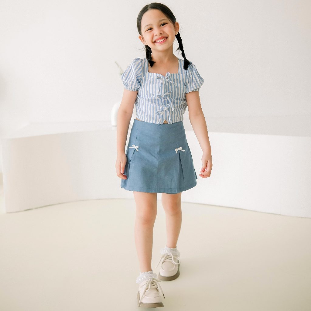 DOOBEEDAM NINA SET - SETELAN ONE SET JEANS SKORT ANAK PEREMPUAN PINK BIRU 1-7 TAHUN