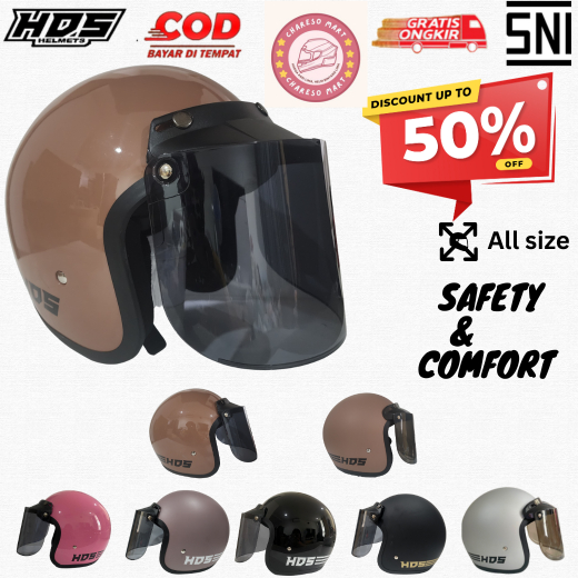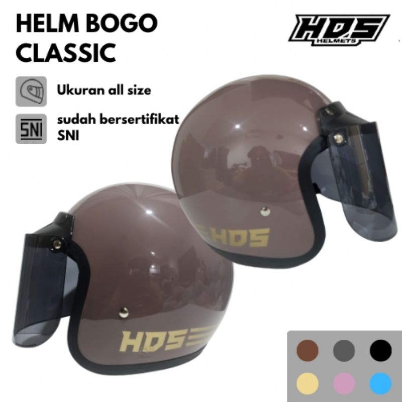 HELM BOGO DEWASA POLOS CLASSIC HDS HELMET KACA DATAR CEMBUNG HITAM BENING UNTUK COWOK CEWEK PRIA DAN WANITA HIJAB