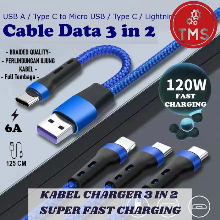 FLASH SALE KABEL CHARGER 3 IN 2 SUPER AST CHARGING NEW MODEL KABEL DATA TRAVEL LIGHTNING TYPE C MICRO USB CEPAT HITAM