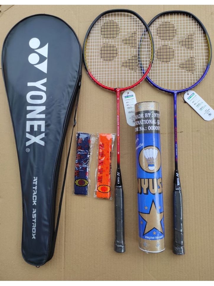 Raket Badminton Paket Lengkap Dapat 2 Raket + 2 Grip + 1 Tas + 1 Slop Kock