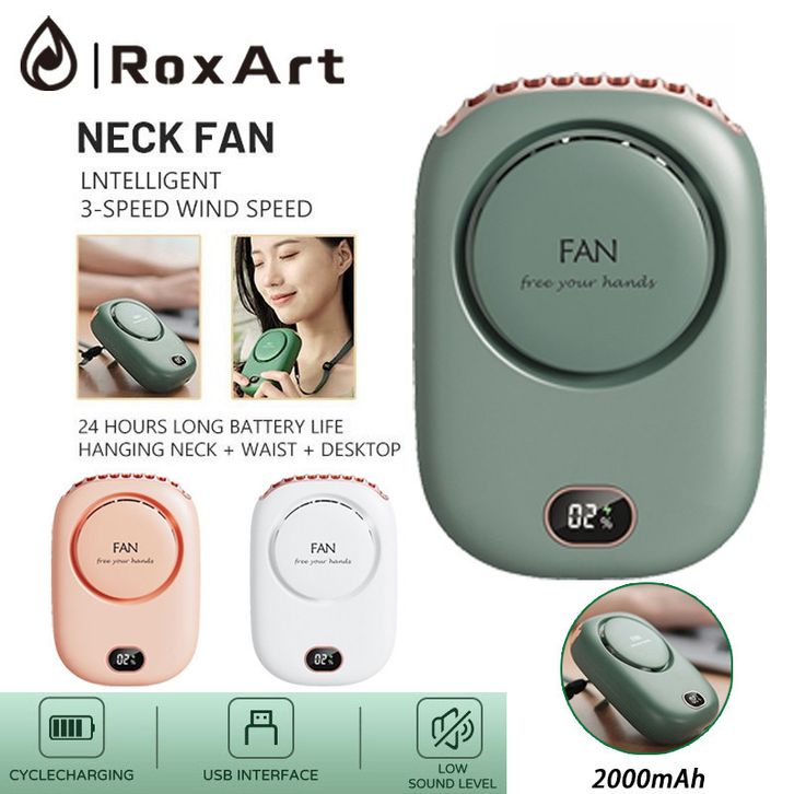 GROSIR RoxArt Neck Fan Rechargeable Mini Fan Mini Hanging Neck Fan Portable Fan Hanging Battery Display odocb