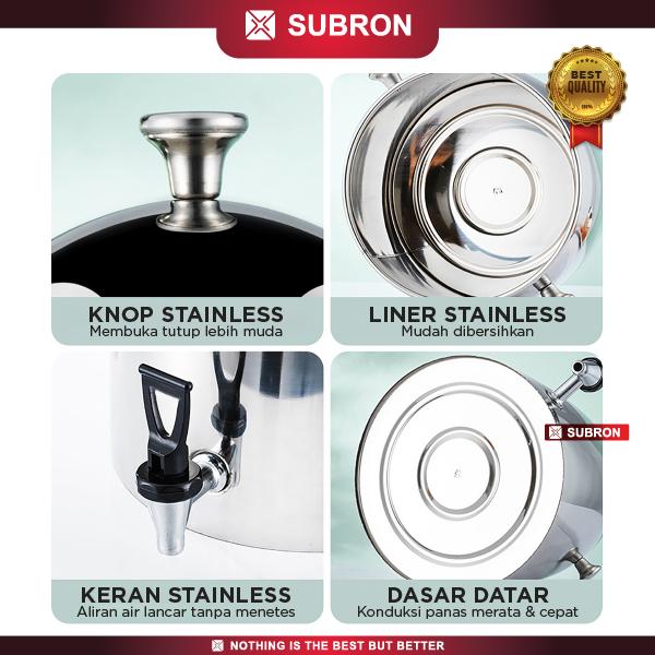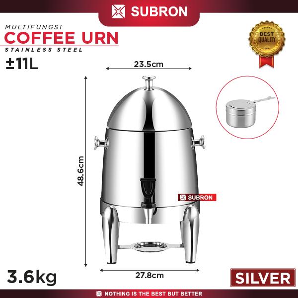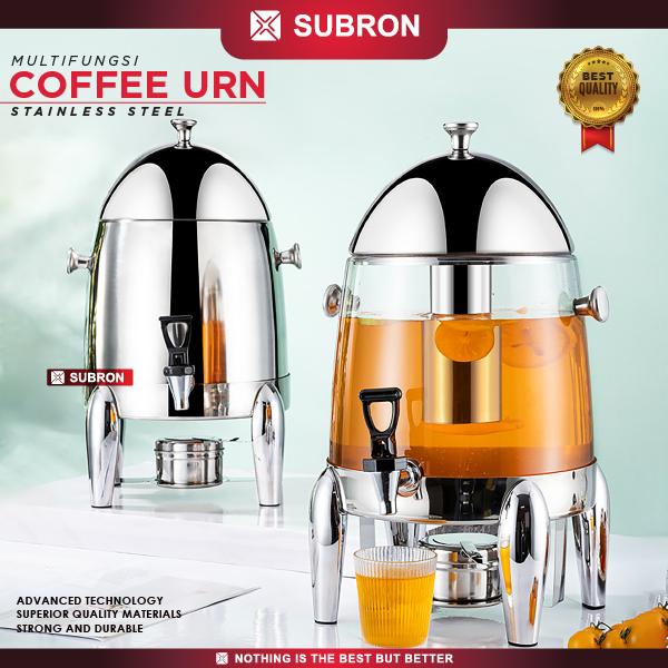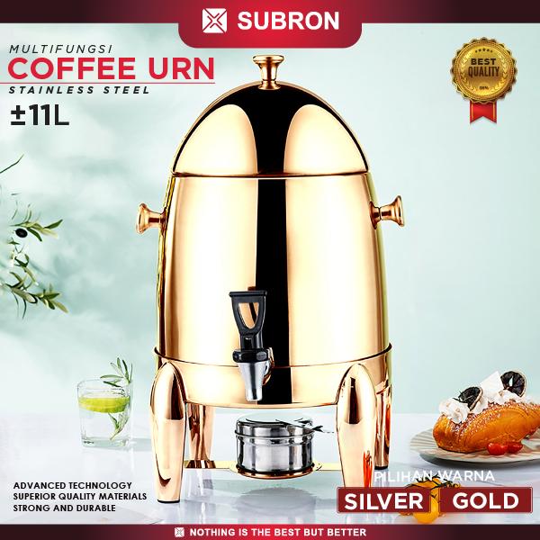 SUBRON Dispenser Coffe URN Juice Tea Minuman 11L Panas Dingin Tabung Es Full Stainless Silver Gold Restoran Cafe Prasman
