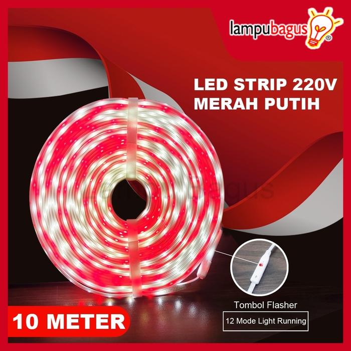 Lampu LED Strip Selang 2835 10 Meter 220V Indoor Outdoor Merah Putih