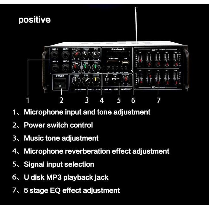 Sunbuck Bluetooth EQ Audio Amplifier Home Theater 2x200W - TAV-MP325BT