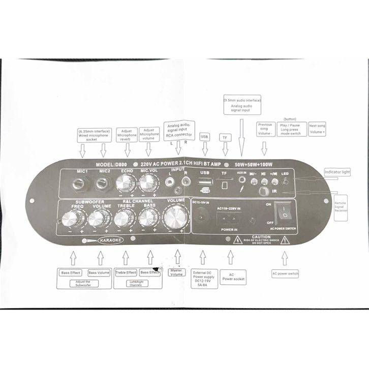WOOPKER Amplifier Board Audio Bluetooth USB 2.1 Channel 12-19V - D800