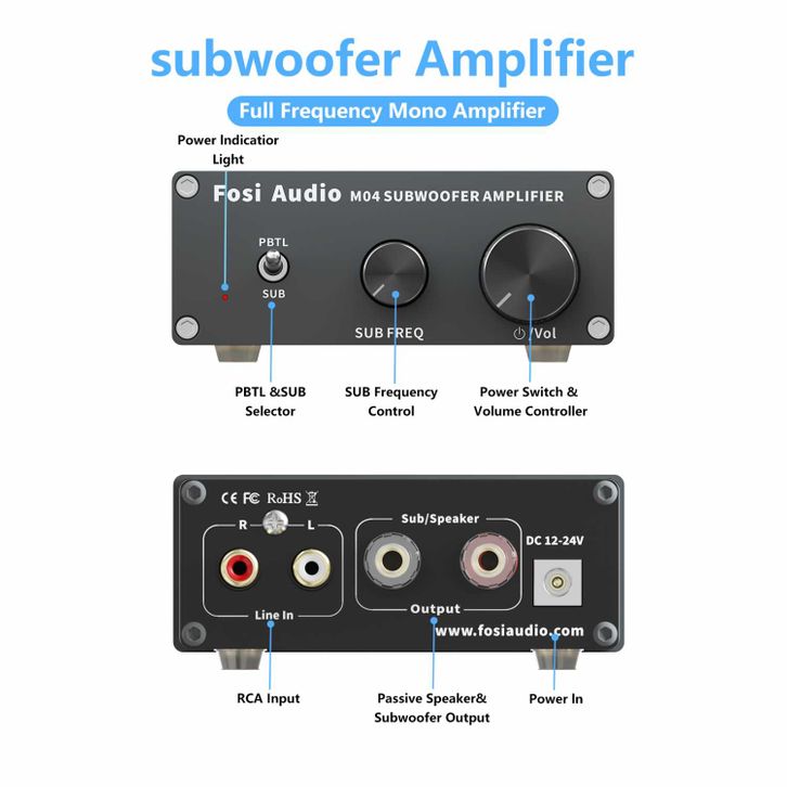 Fosi Audio Amplifier Subwoofer Mono Channel for Passive Speaker 100W - M04