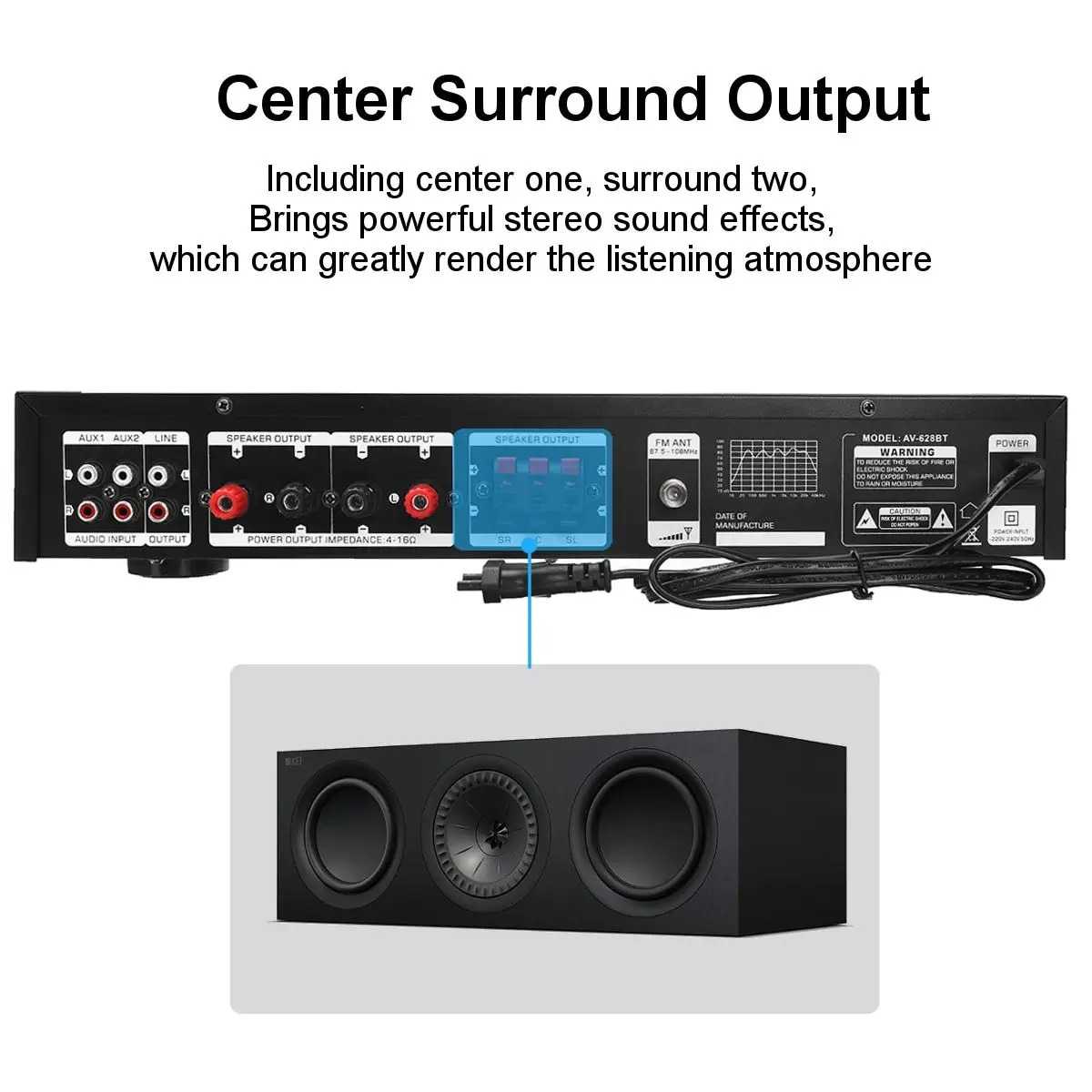 Sunbuck Audio Amplifier Bluetooth 5.0 Subwoofer FM 5 Ch Remote 2000W - AV-628BT