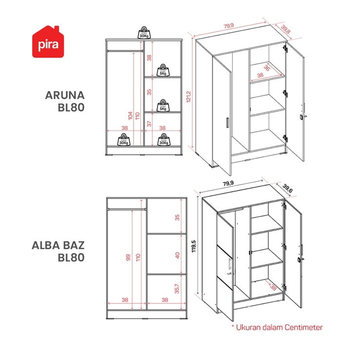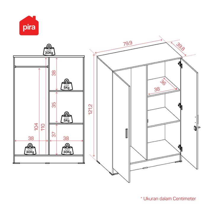 Pira Metropolis OX Aruna BL80 Lemari Pakaian Kecil 2 Pintu