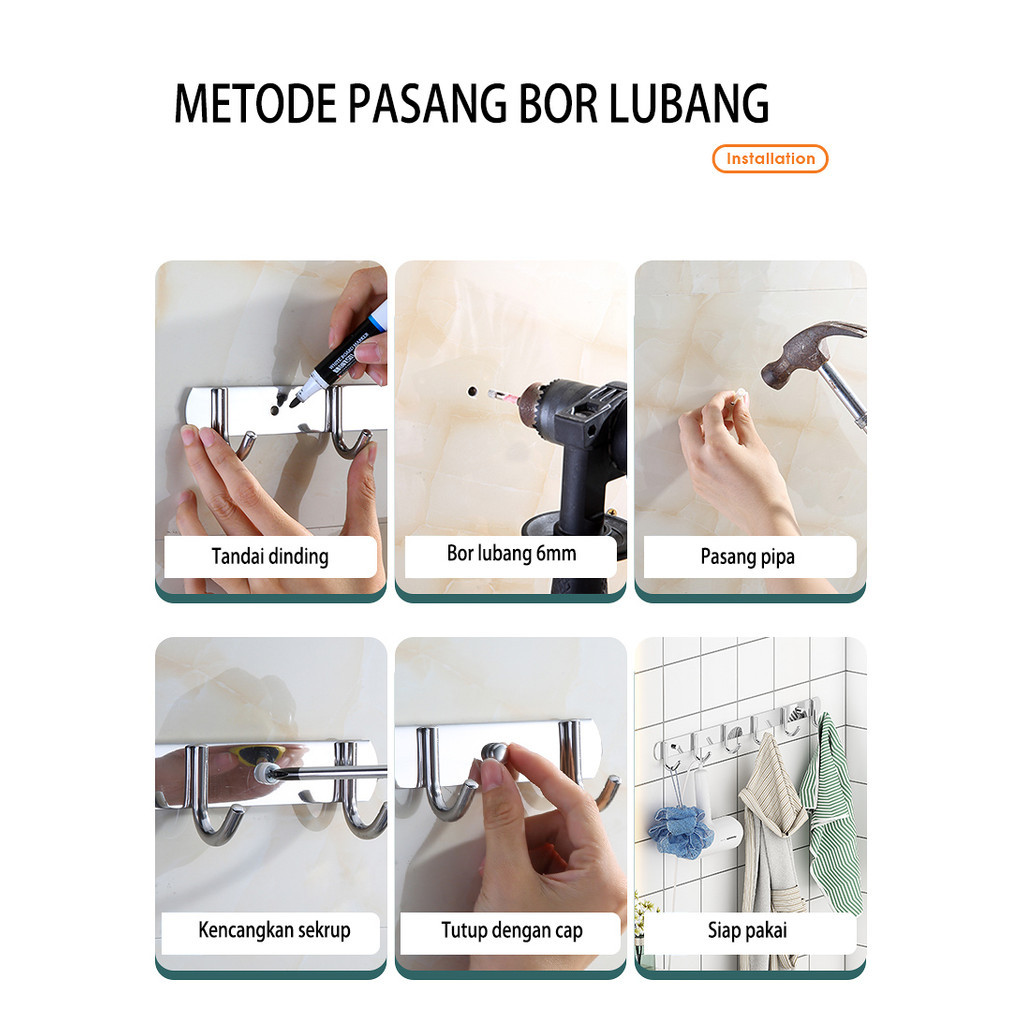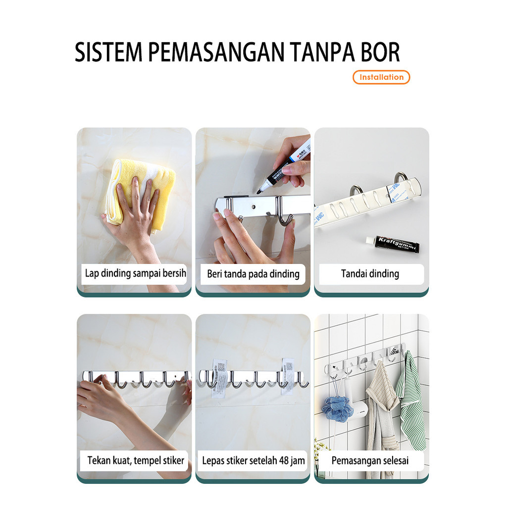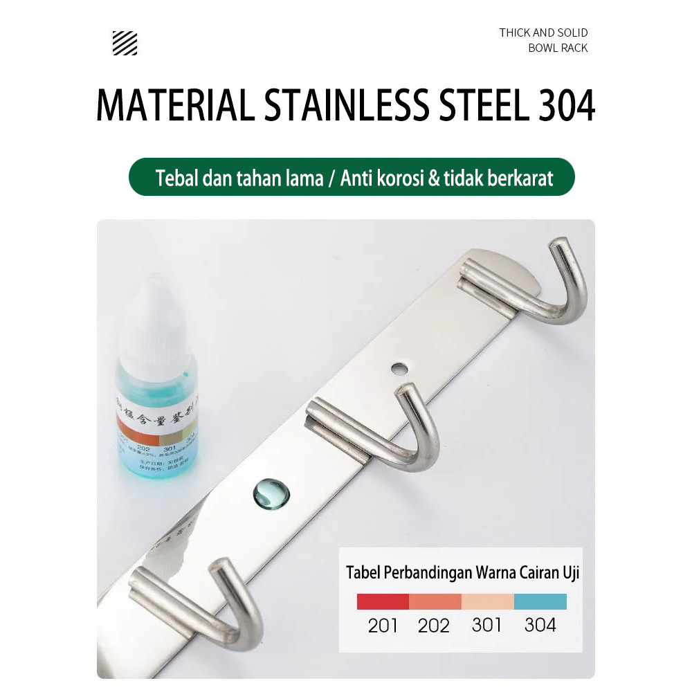 Gantungan Stainless Steel Kuat, Tanpa Bor/Bekas, Tahan Beban - Untuk Dapur/Baju/Handuk