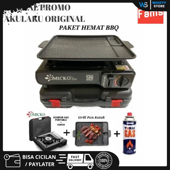KOMPOR PORTABLE PAKET KOMPOR GAS PORTABLE OMICKO 2 IN 1 FREE BUBBLE WRAP KOMPOR BBQ PORTABLE
