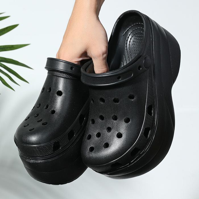 FLASH SALE SANDAL WEDGES 10CM WANITA FREE JIBBITZ DANE AND DINE W100 SENDAL BLACK, 37