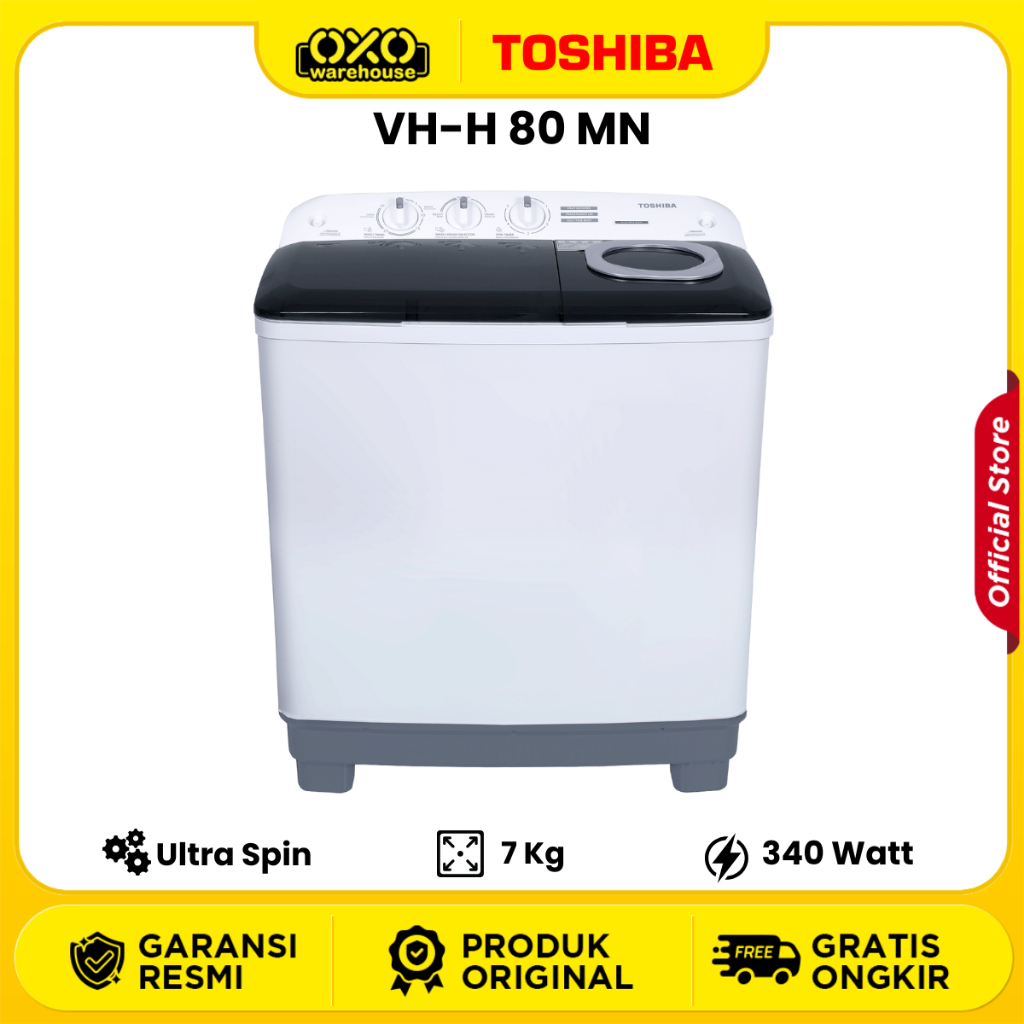 TOSHIBA Mesin Cuci Dua Tabung 7.0kg Model VH-H80MN Twin Tub Low Watt Garansi Resmi