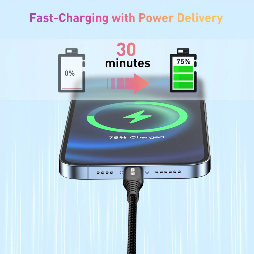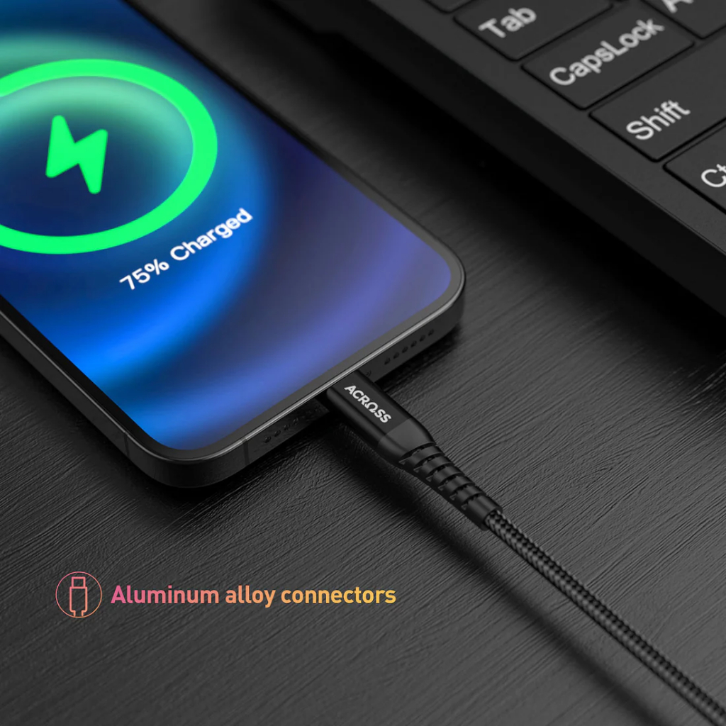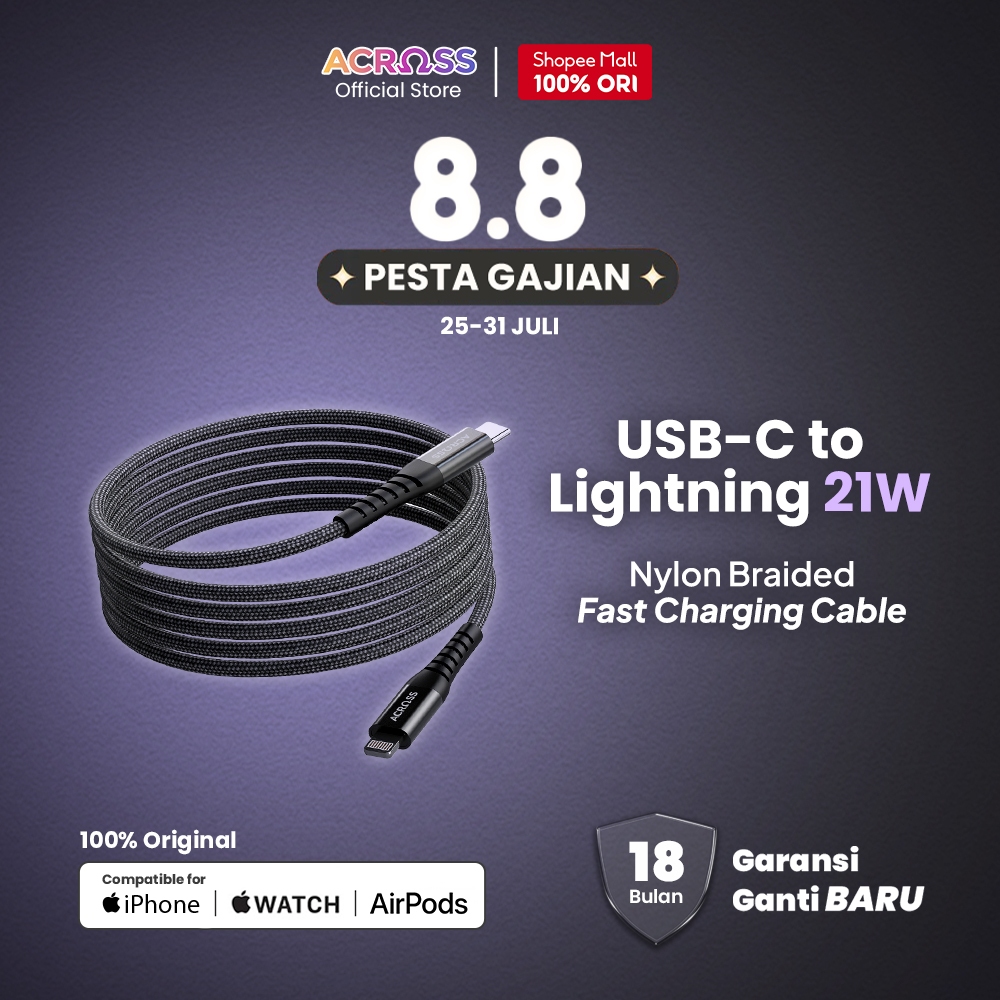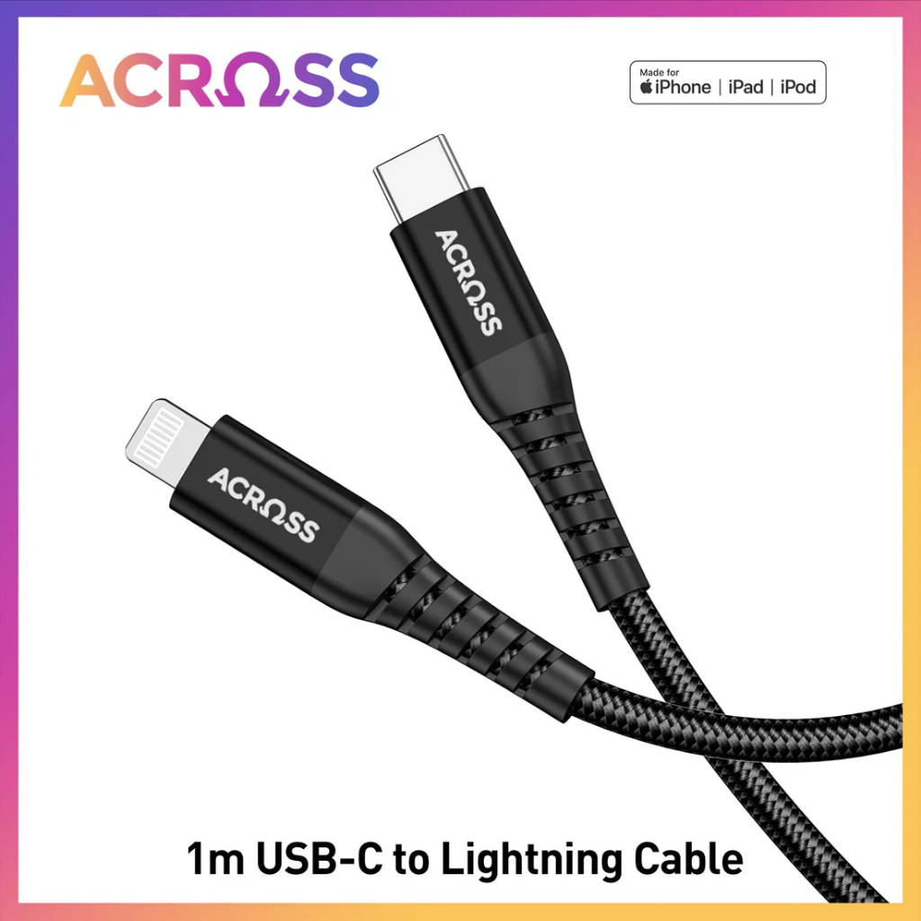 ACROSS Kabel Data Type C to Lightning 21W MFi Certified Charger for iPhone Fast Charging