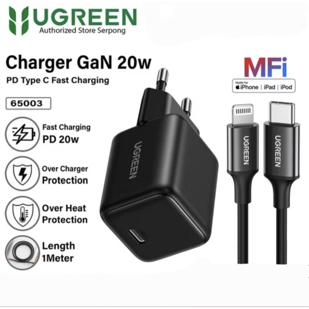 Charger iPhone UGREEN Original Fast Charging Adaptor USB Type C to Lightning Mfi 20W Garansi 1 Tahun