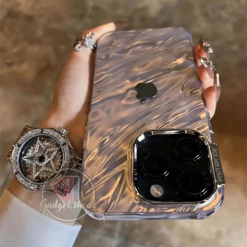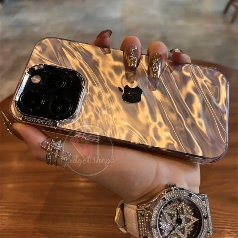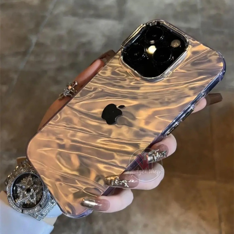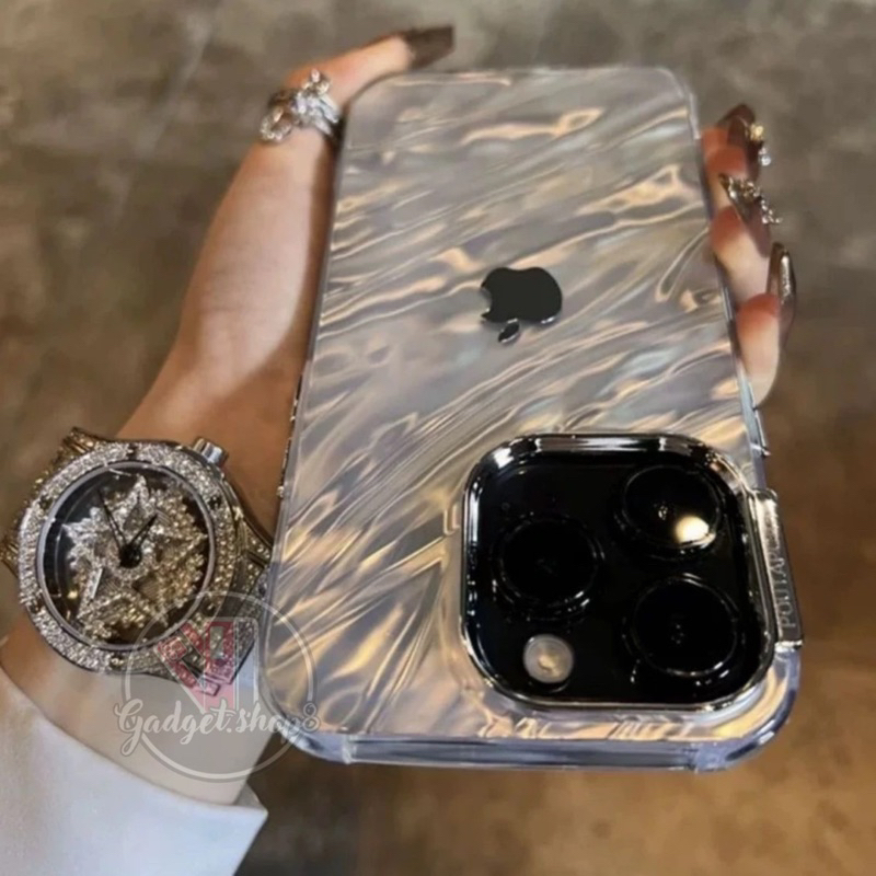 Metalic Hologram Dazzle Wave Case Logo IPHONE X XR XS MAX 11 12 13 14 15 PRO MAX 14+ 15+ PLUS Hologram Wrinkle Textured