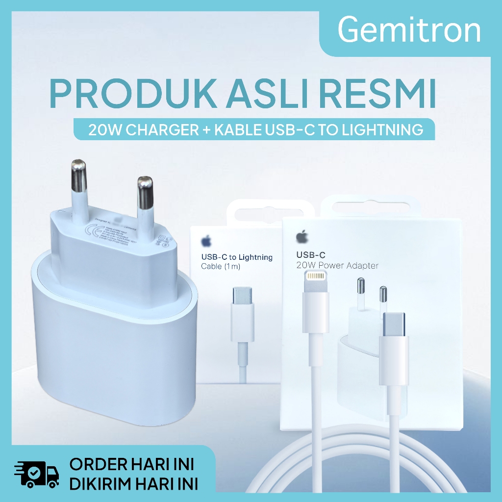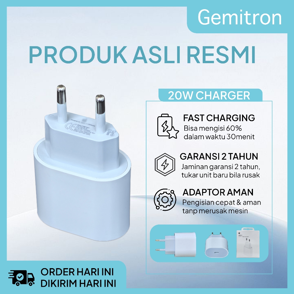 GEMITRON - ORIGINAL Adaptor Fast Charger iPhone Bergaransi PD 20W USB-C Power Adapter Charger Fast Charging Kabel Data T