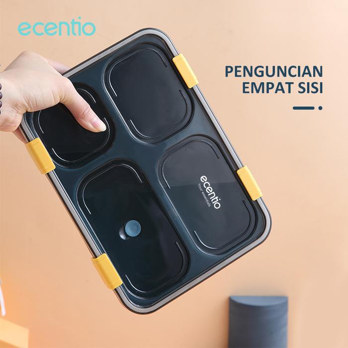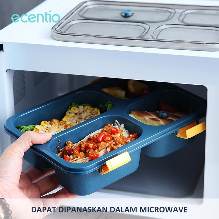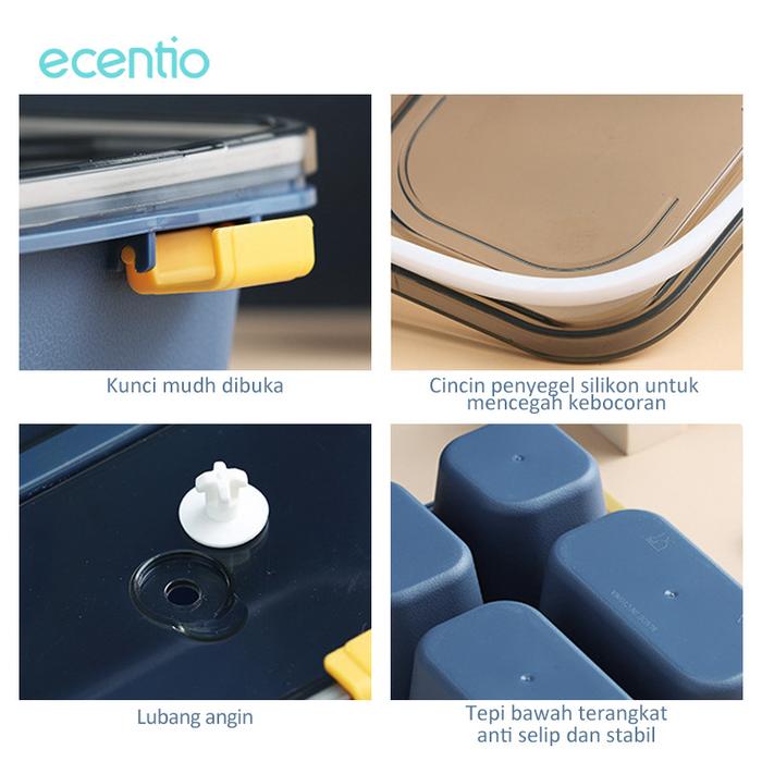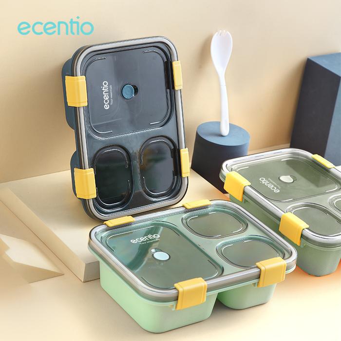 PROMO TERBATAS ECENTIO 850ML KOTAK MAKAN 3 GRID DENGAN KOTAK SUP BAWALAH SENDOKHIJAU 850ML