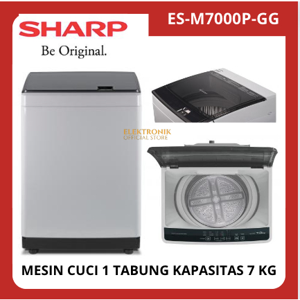 SHARP MESIN CUCI 1 TABUNG ES-M7000P-GG MEGAMOUTH T0P LOADING 7 KG/ESM7000PGG/ESM 7000/100 PERSENORIGINAL