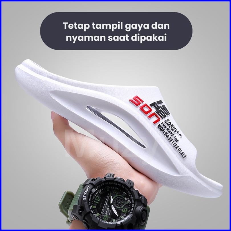 Muzy Sandal Pria Slip On Korean Style Eva Empuk Ringan Sandal Slide Pria Hsn226