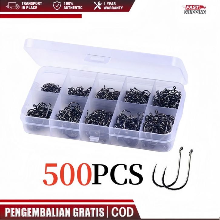 MONQIQI Set 500 Pcs Kail Pancing Aneka Ukuran Bahan bajja Karbon Dengan Tali Pengait Kail Pancing Swan Akita Kitsune Ka