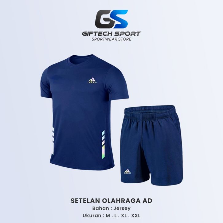 Setelan Olahraga Pria Lengan Pendek 1 Set Lengkap Baju Kaos Celana Pendek Dryfit Pakaian Outdoor Lari Jogging Badminton
