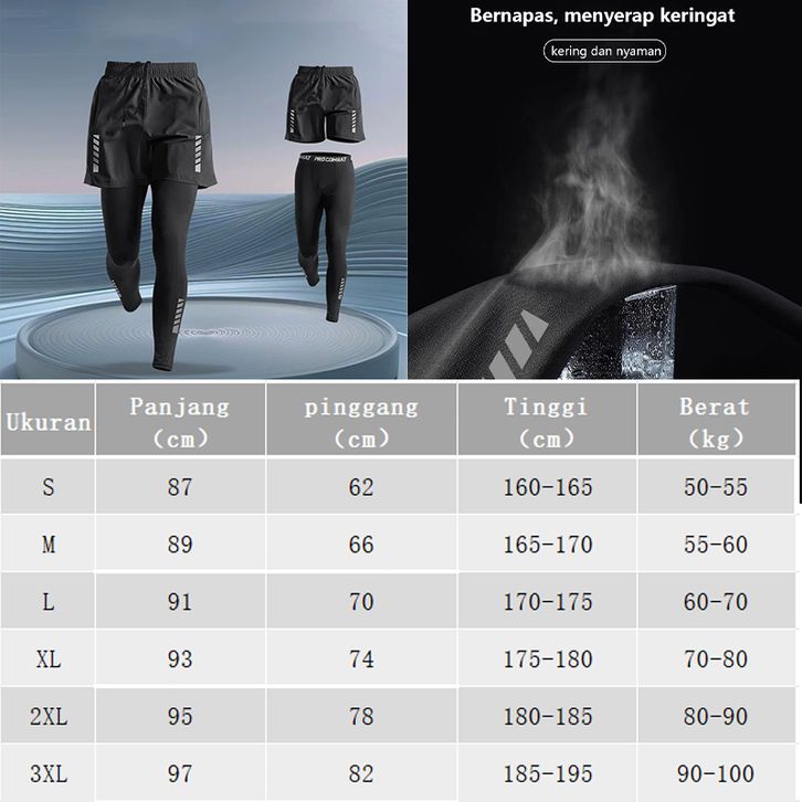 【Produk baru】KAMB 2pcs Celana Legging Olahraga Panjang Gym Running Pria/celana pendek pria