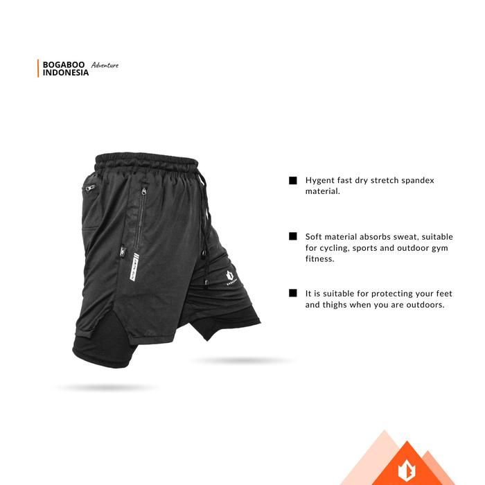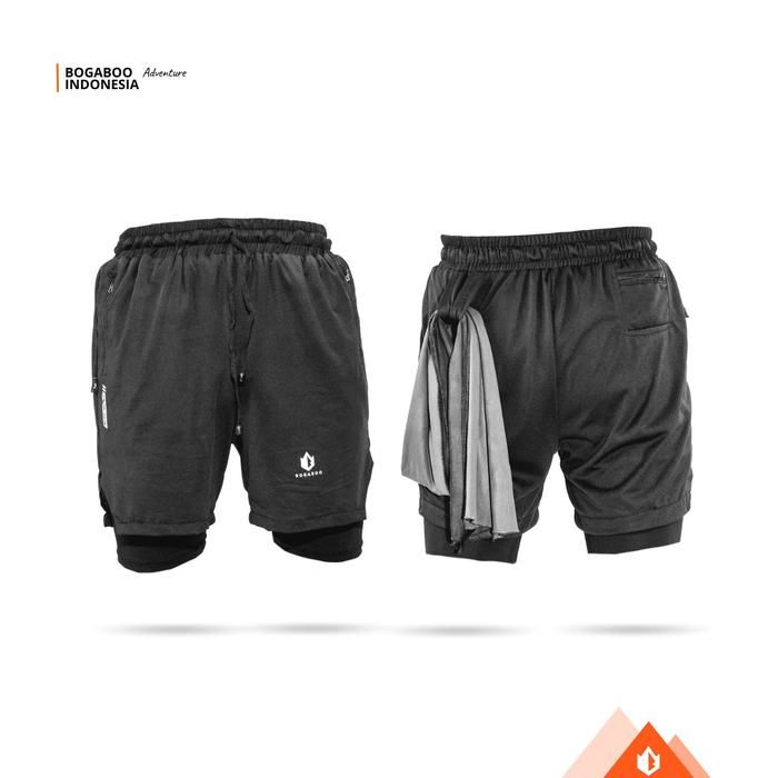 BOGABOO Running Pants Seri ARON-RUN - Double Celana Dan Lagging Pendek - Celana Olahraga Gym Fitness Sport Running Hiki