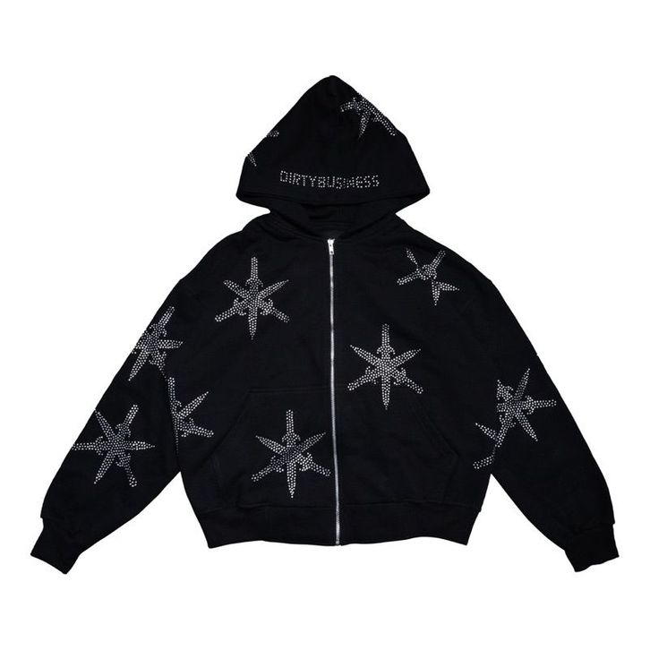 PROMO - SWEATER HOODIE BOXY DOUBLE ZIPPER DIRTYBUSINESS RHINESTONE OVERSIZE UNISEX