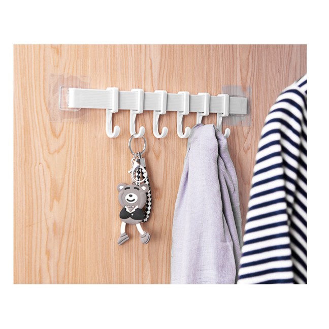 Gantungan Baju Pakaian Handuk 6 Hook Hanya Tempel Dinding