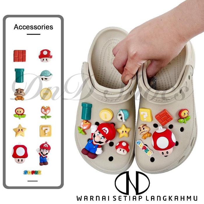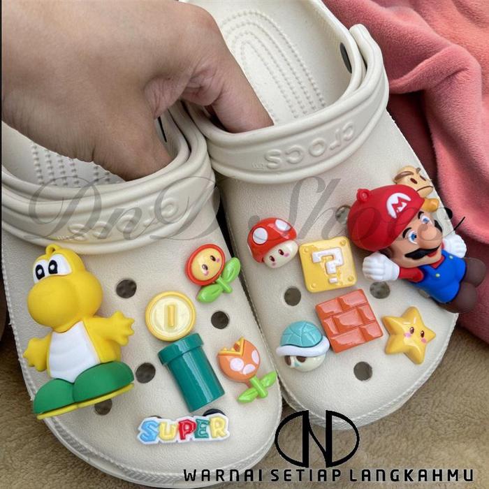 FLASH SALE SET PIN JIBBITZ CHARM MARIO AKSESORIS SANDAL SEPATU CROCS MARIO4D