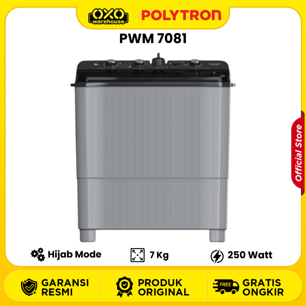POLYTRON Mesin Cuci PWM 7081 7 Kg 2 Tabung Hijab Mode Low Watt Garansi Resmi