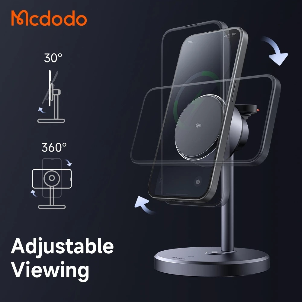 Mcdodo CH 2462 3 in 1 Magsafe 360 Stand Charger 15w - Mag Magnet Magnetic Holder Free Charger 33w with Type-C Cable Fast