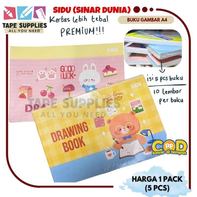 Buku Gambar SIDU A4 / (1 PAK ISI 5 BUKU) - BUKU GAMBAR LUCU KARAKTER