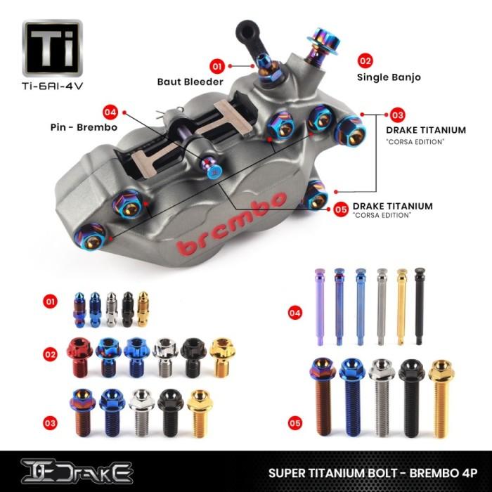 DP 0 DRAKE TITANIUM BAUT KALIPER BREMBO 4P BAUTBANJOSINGLE HITAM