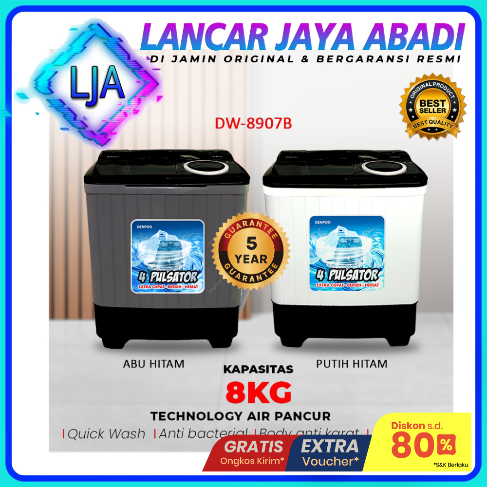 Mesin Cuci 2 Tabung 8 Kg DENPOO DW 89074P Body Fiber - DW 8907B