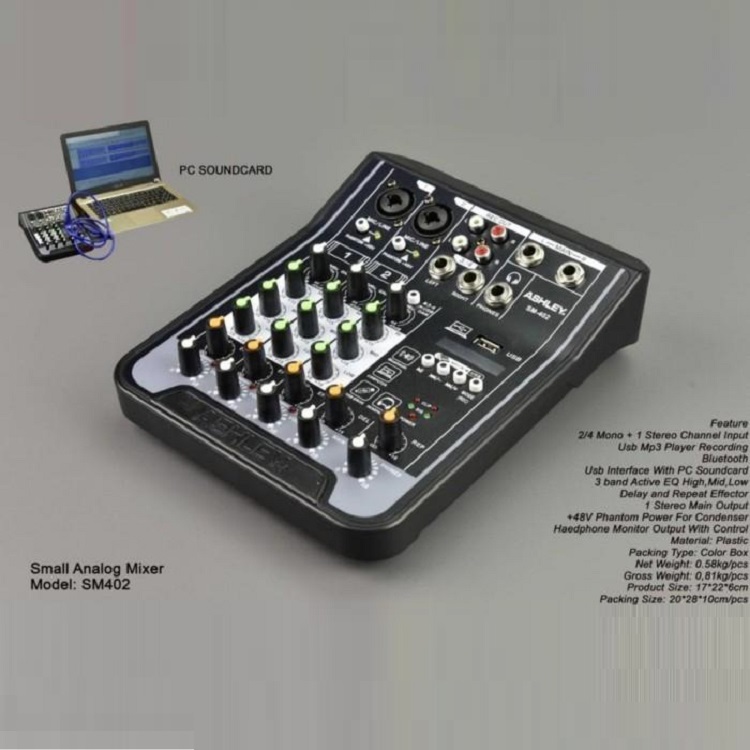 Mixer Audio ASHLEY SM 402 (4 Channel)USB,Bluetooth ORIGINAL - SM 402