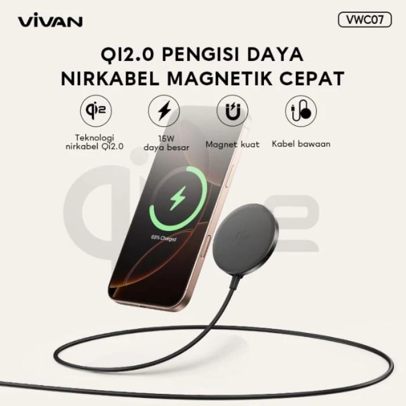 Vivan VWC07 Charger Wireless Magnetic Magsafe iPhone Android 15W Max Qi2 Charge