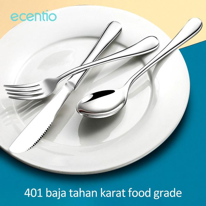 PROMO TERBATAS ECENTIO SET ALAT MAKAN SENDOK GARPU SUMPIT 410 STAINLESS STEELHITAM1