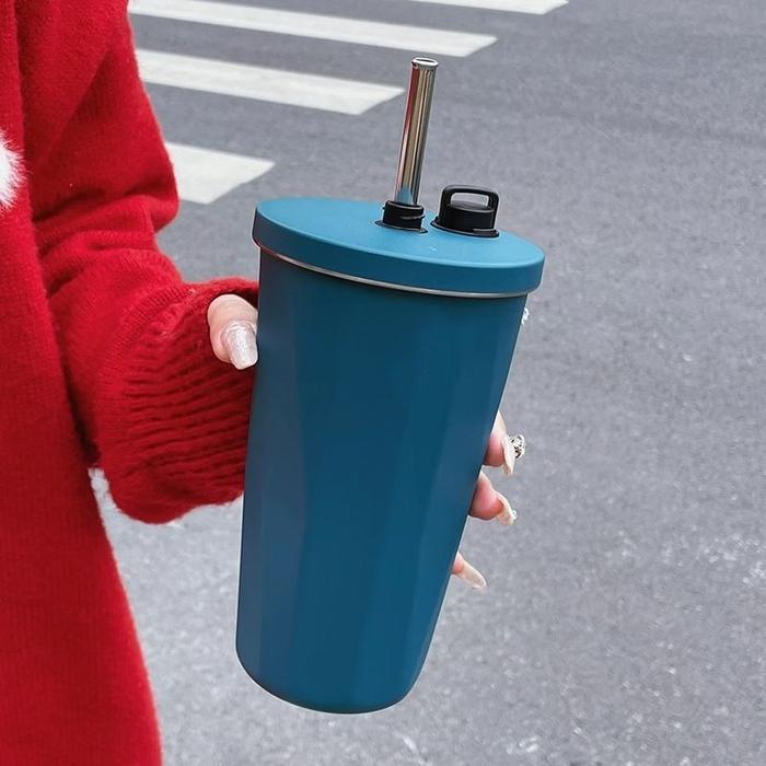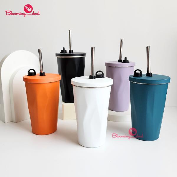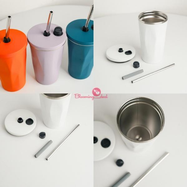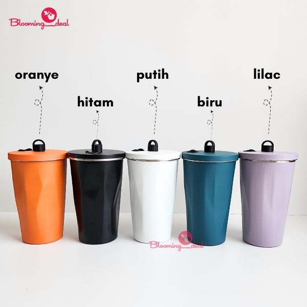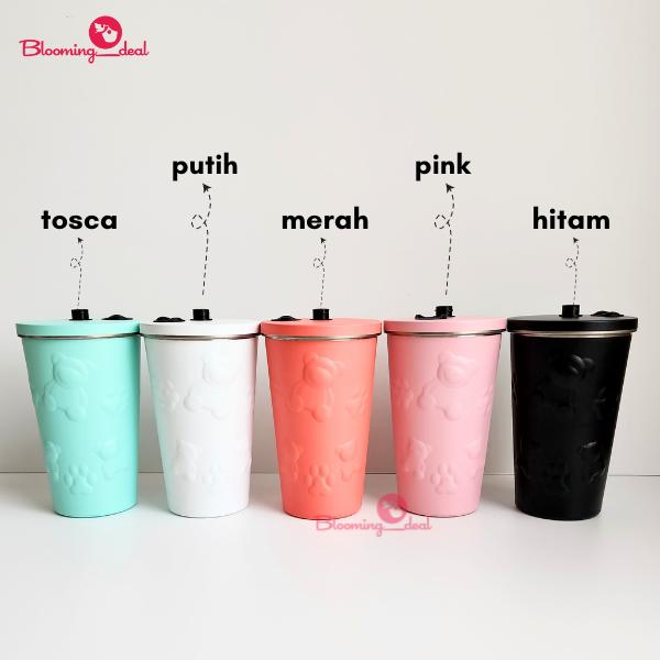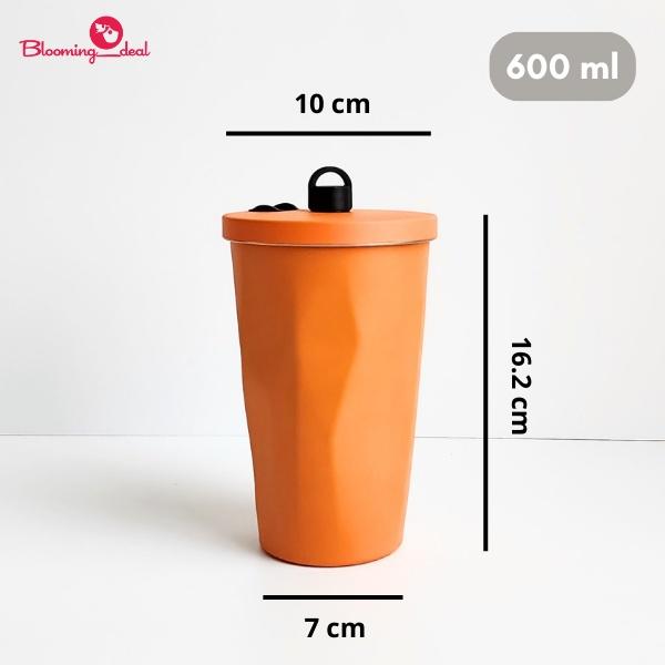 FLASH SALE TUMBLER MUG KOPI GEOMETRIS & BEAR COEE MUG DENGAN SEDOTAN 600ML (HN242HN243HN250) GEO ORANYE