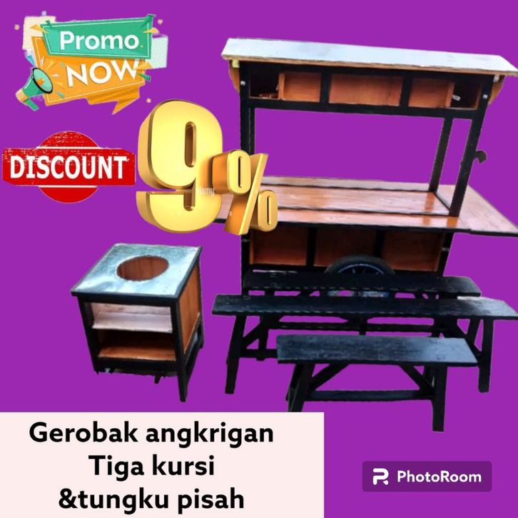 gerobak angkringan tiga kursi dan tungku pisah free ongkir