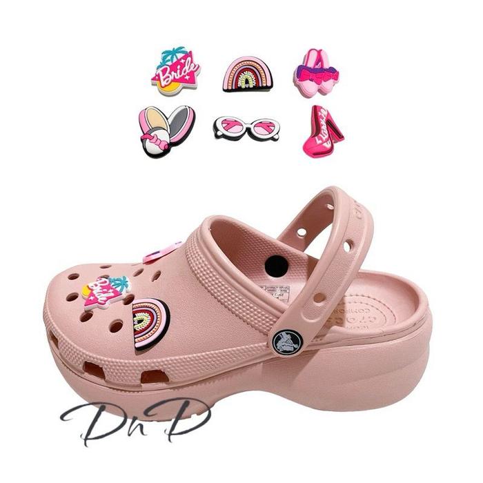 FLASH SALE CROCS PLATFORM 55CM BONUS JIBBITS ACAK AQUA BLUE, W5