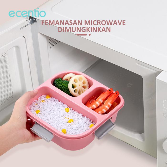 PROMO TERBATAS ECENTIO KOTAK MAKAN 3 SEKATANTI TUMPAH LUNCH BOX 1100ML BPA FREE