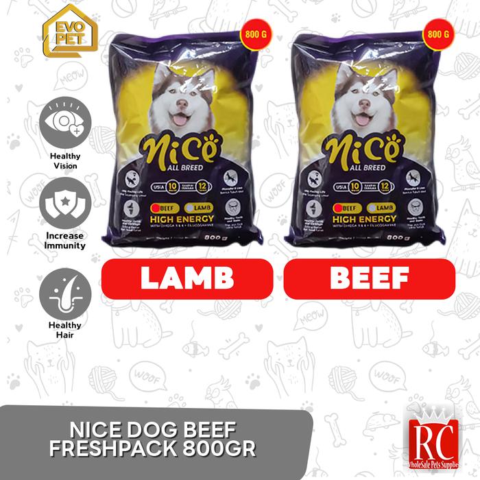 DP 0 MAKANAN ANJING DOG FOOD NICE DOG REPACK BEEF LAMB 1 KG LAMB800 FRSHPCK