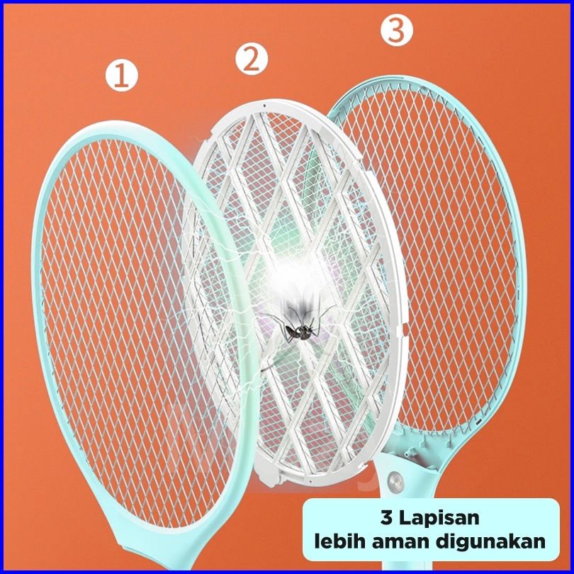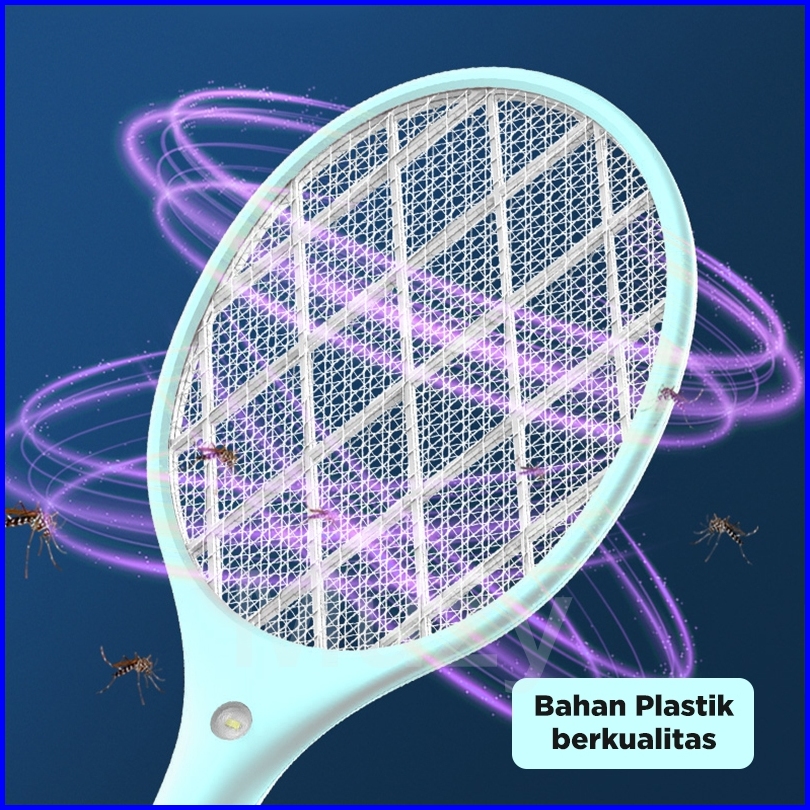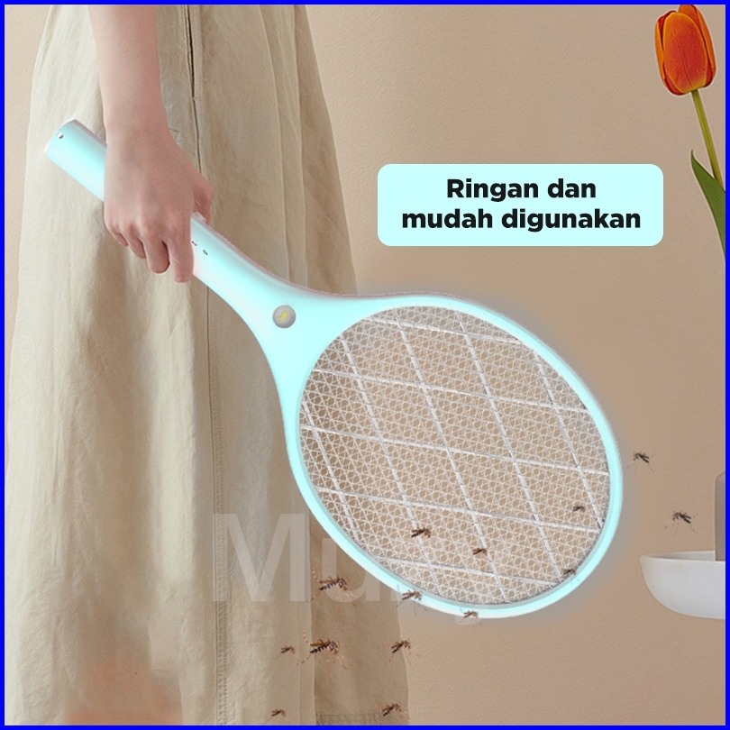 Muzy Raket Nyamuk Baterai Cas Led Lampu Rechargeable Mosquito Electric Swatter Heg201