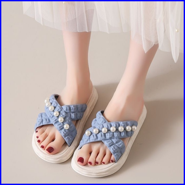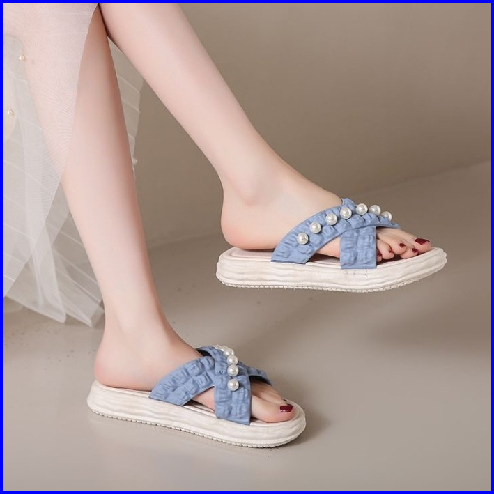Muzy Sandal Wanita Flat Korean Tali Silang Mutiara Anti Slip Flat Shoes Wanita Sendal Wanita Hsn218