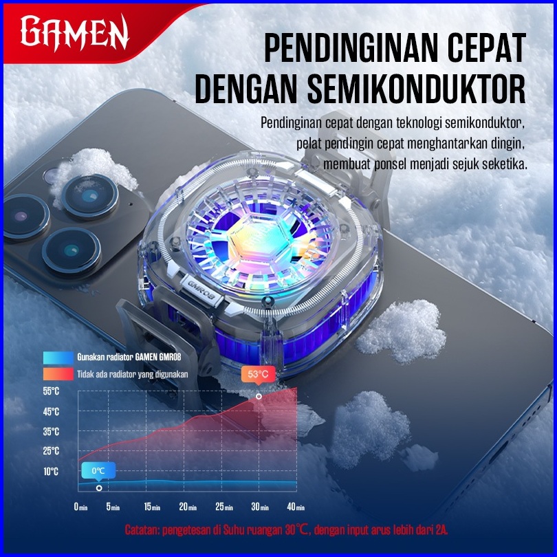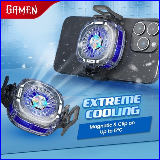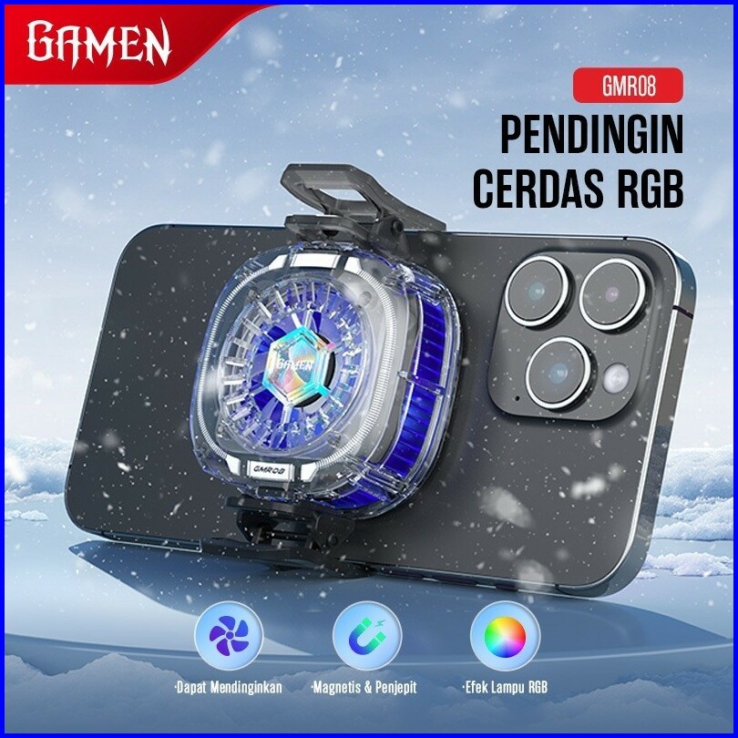 Gamen Fan Cooler Hp Gaming Magnetic Rgb Up To 5 C Gmr08 Dengan Klip Penjepit For Iphone Android Original - Garansi 1 Tah