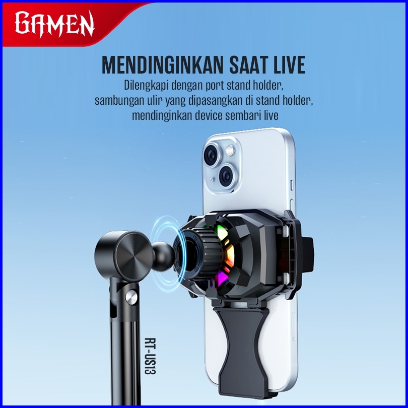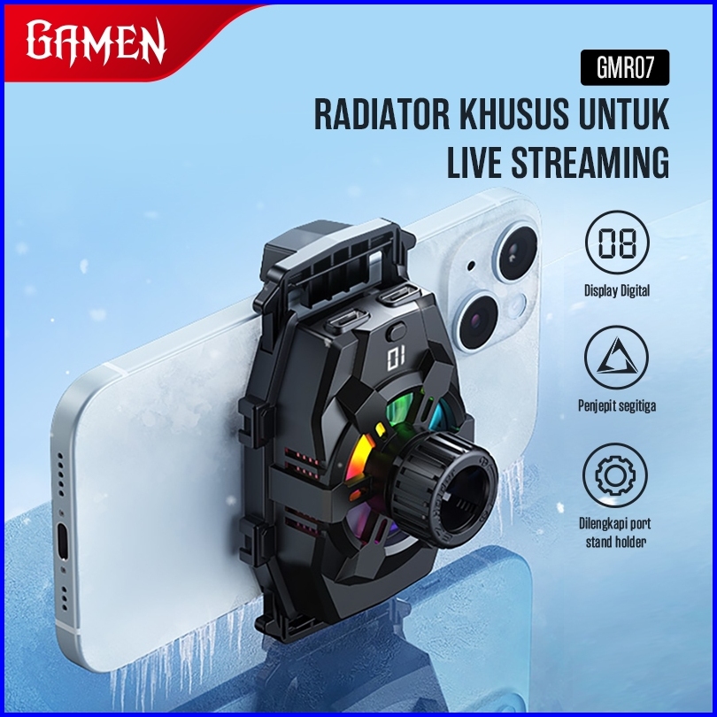Gamen Fan Cooler Hp Khusus Live Streaming Lebih Stabil Led Display Gmr07 Rgb Heatsink Pendingin Hp Gaming Fancooler Radi