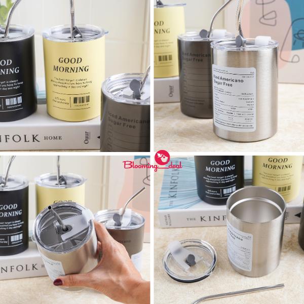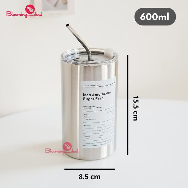 FLASH SALE TUMBLER COEE CUP AMERICANO STAINLESS STEEL BONUS SEDOTAN 350ML 600ML (SD1183) PUTIH 600ML