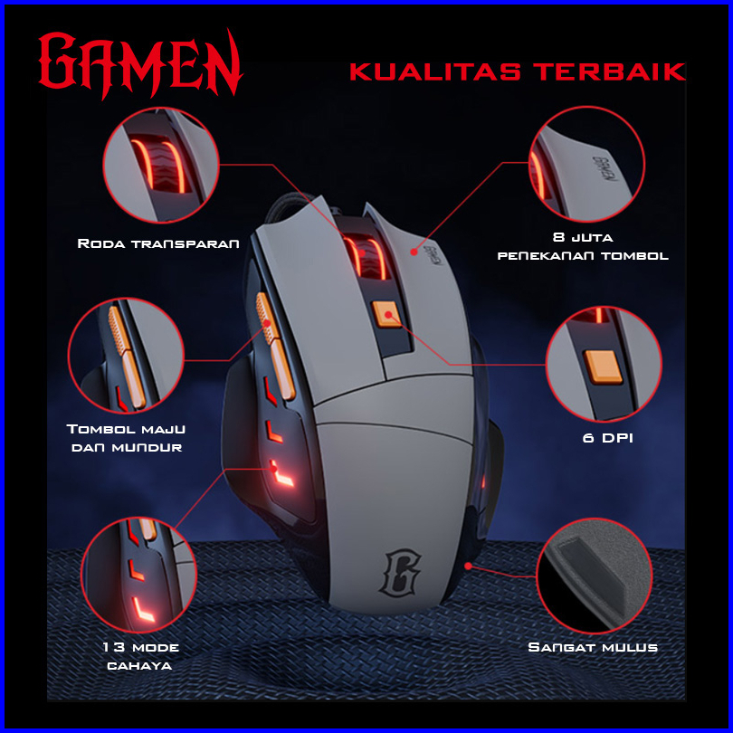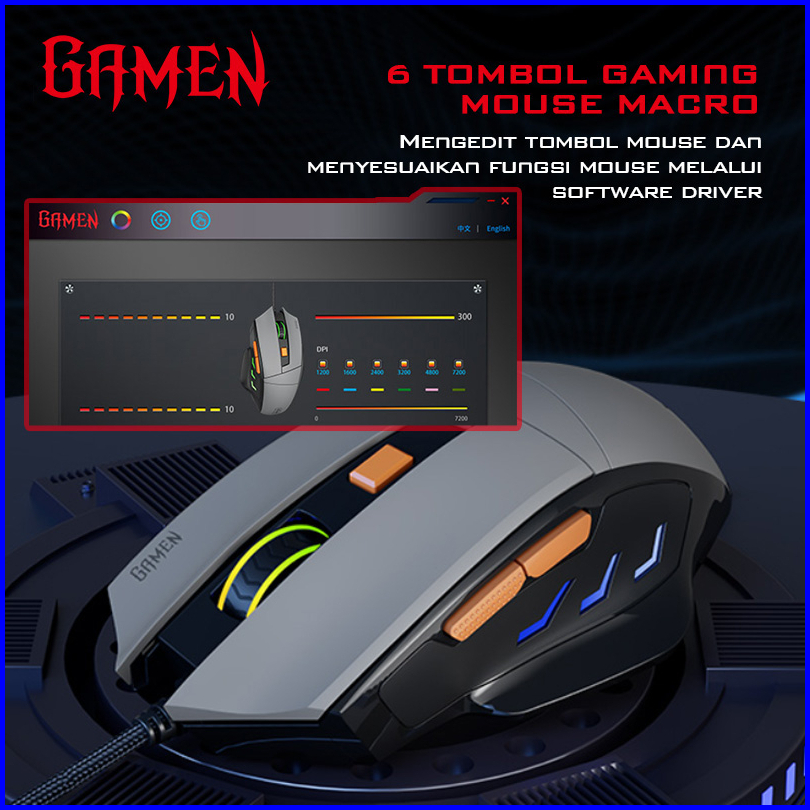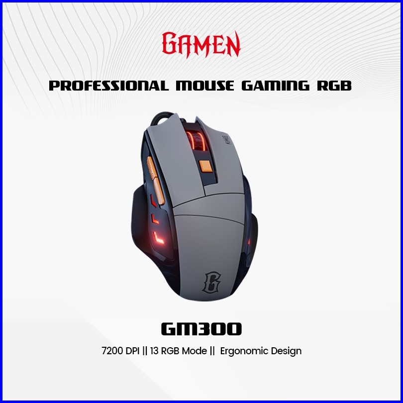 Gamen Mouse Gaming Kabel 7200 Dpi 6 Level Dpi 13 Mode Rgb 6 Macro Button Gm300 For Laptop Pc Original - Garansi 1 Tahun